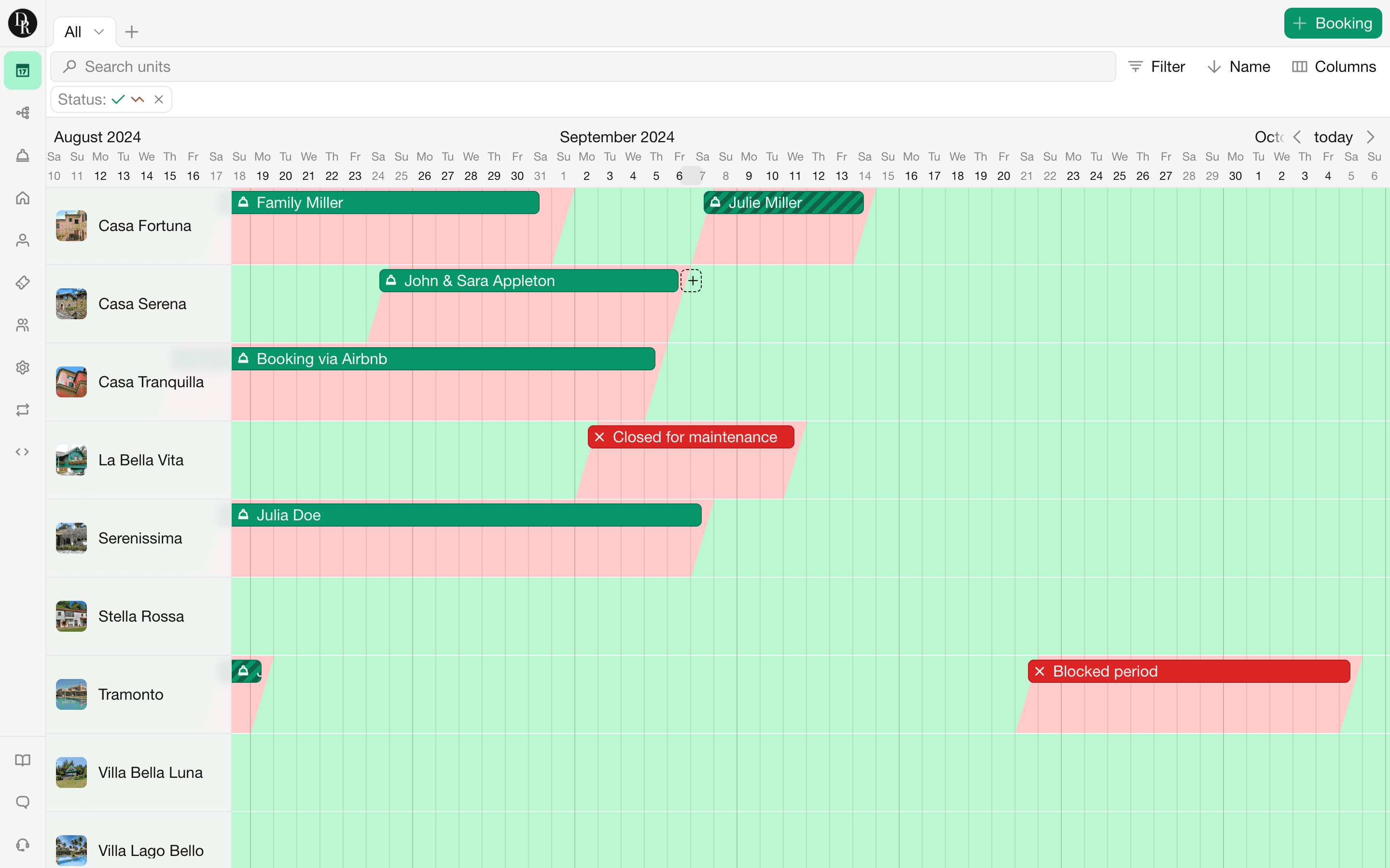 Manage all your bookings from a single, comprehensive view. Quickly find available periods, track payments, write notes and reschedule bookings.